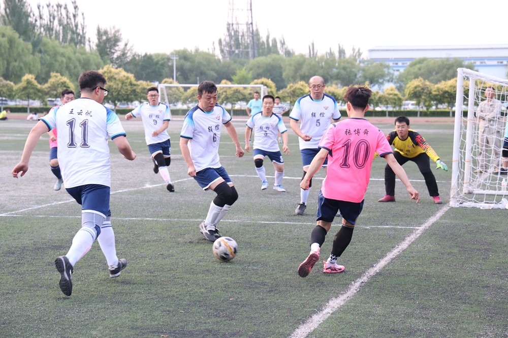 绿茵场上响起阵阵欢呼,参赛队员们精神饱满,拼尽全力在赛场上一展风采,传球、转身、射门,每一个动作都体现了队员间完美的配合,营造了团结向上的良好氛围。