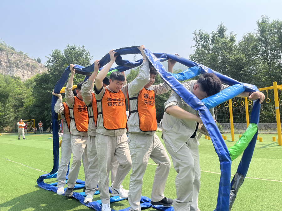 在随后开展的趣味团建“聚力先锋”环节中,大家手脚协调配合,现场充满欢乐与活力;“卓越同行”时,队员们绑腿前行,齐声喊着口号,在同步前进中增进默契;“青春攻坚”项目里,众人携手协作,将创意与智慧融入实践,让巨型滚轮不断向前"滚动"……