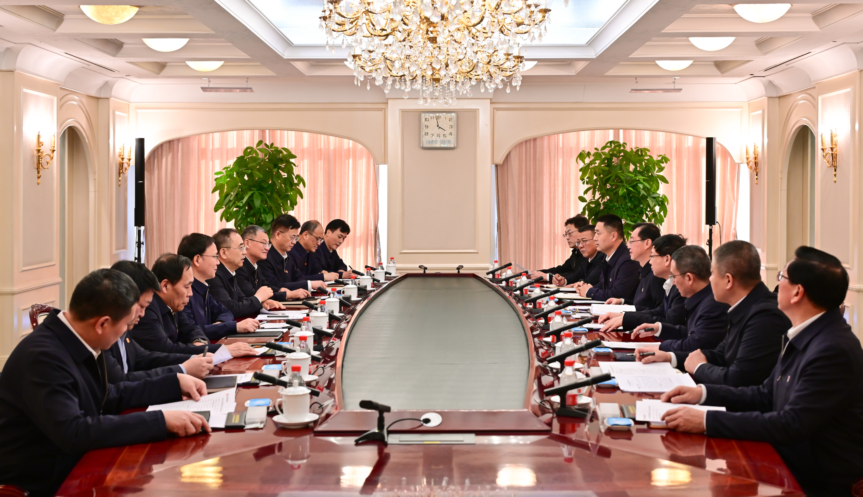 本网讯 1月15日,球王会体育官方网站集团有限公司党组书记、董事长邹磊,董事、总经理、党组副书记张传江在总部与来访的中国安能建设集团有限公司党委书记、董事长陈奕辉,总经理、党委副书记周庆丰举行会谈。双方围绕深化能源合作、应急救援等进行友好沟通交流。