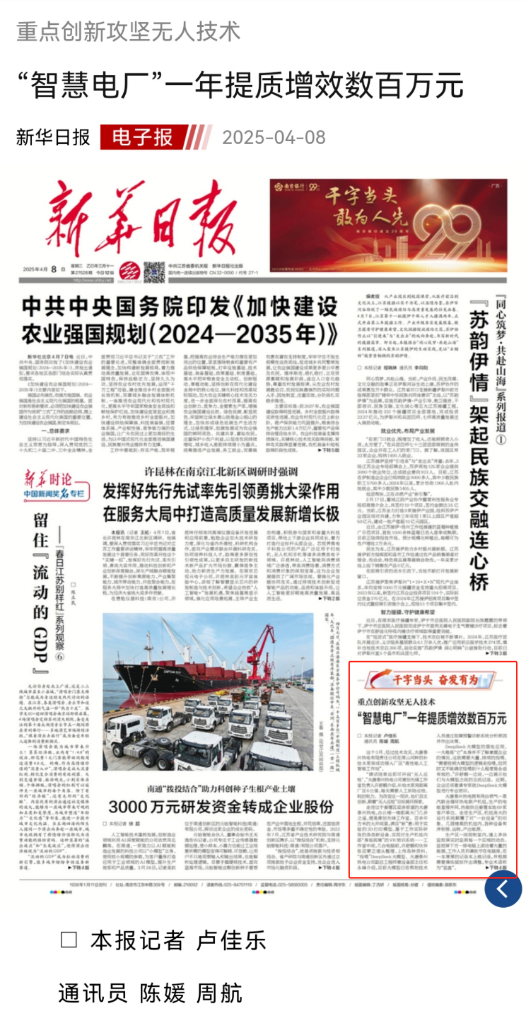 [新华日报] “智慧电厂”一年提质增效数百万元
