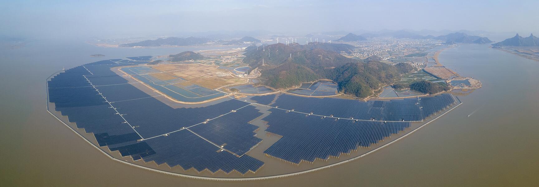 东海之滨象山县高塘岛乡,国内首个大型海岸外滩涂光伏电站--长大涂光伏电站--;60多万块光伏组件在阳光下熠熠生辉。该电站每年可生产清洁能源2.9亿千瓦时,减排二氧化碳24万吨,相当于种植13万颗树。